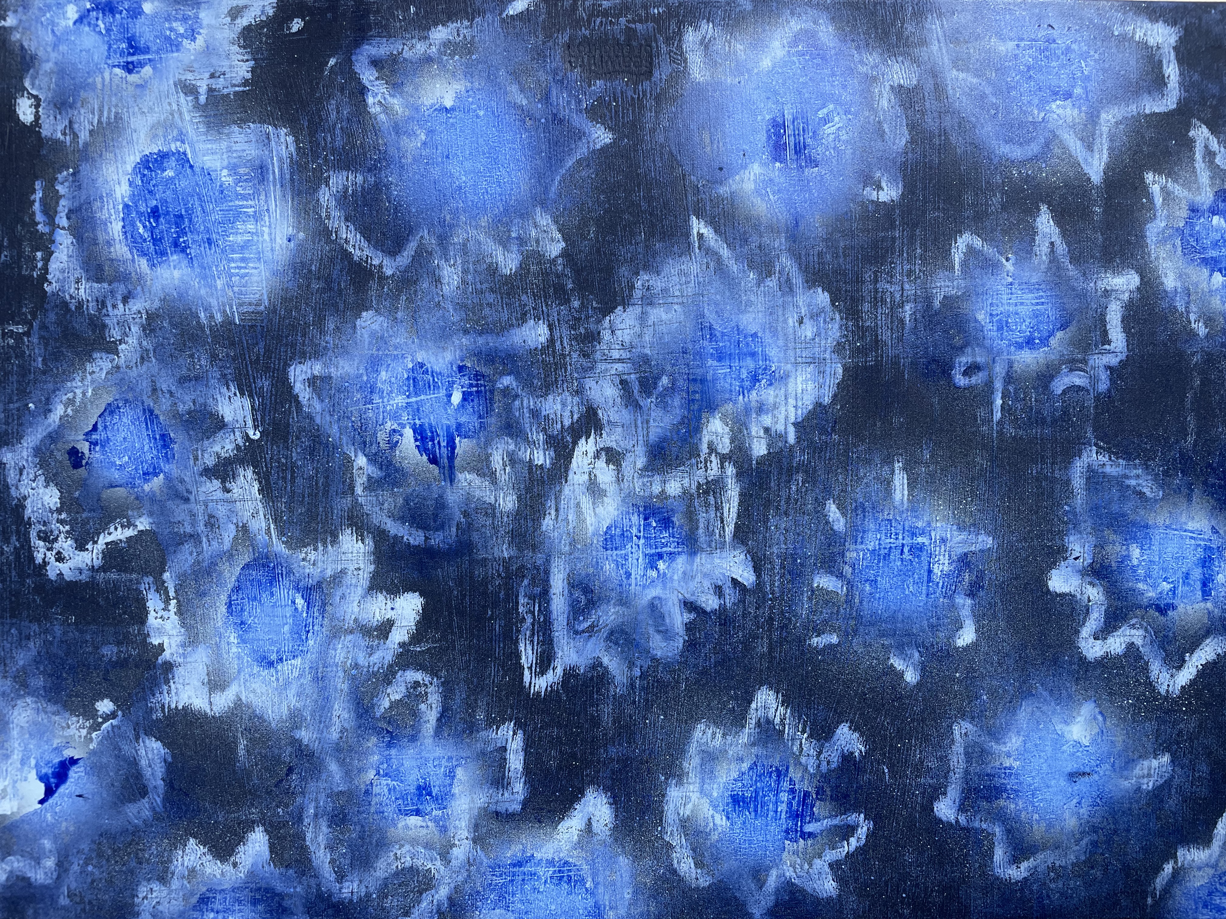 acrylic, oil bar and spray paint on recycled card